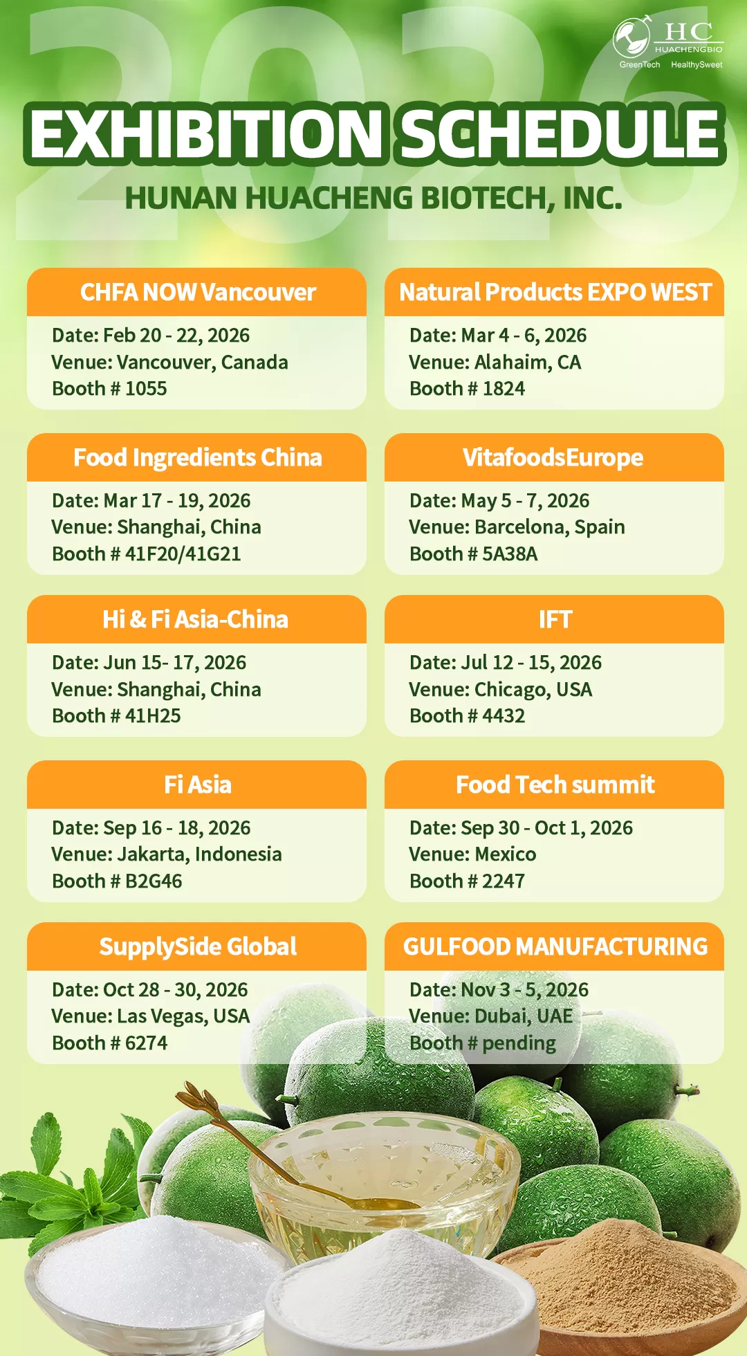 As a global leader in natural, health‑forward sweetening solutions, we will be present at major industry events worldwide to connect, collaborate, and inspire innovation.